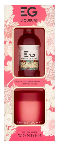 Edinburgh Raspberry gin liqueur and scented candle gift set filled with wonder