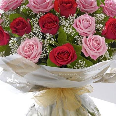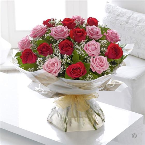 Heavenly 6 Red and 6 Pink Rose Hand Tied 1
