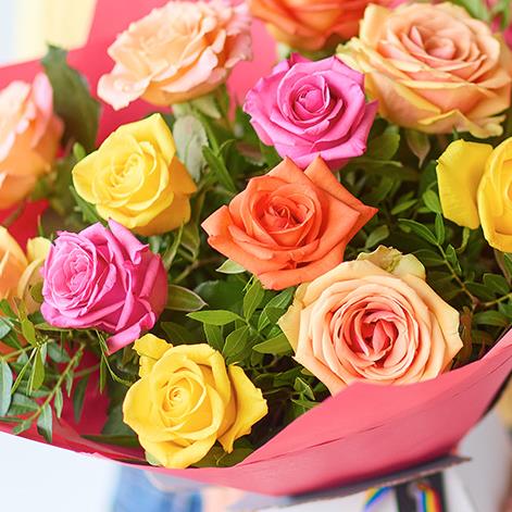 A magnificent assortment of 12 roses in beautiful colours. A romantic rainbow.